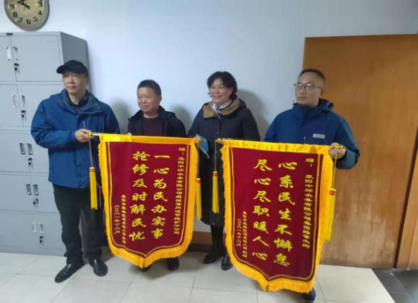 12月24日,建昌幼兒園劉校長將兩面分別繡著“一心為民辦實(shí)事 搶修及時解民憂”和“心系民生不懈怠 盡心盡職暖人心”的錦旗送到了襄陽中環(huán)水務(wù)有限公司,劉校長激動地說:“謝謝你們這么快地給我們解決了大問題!你們是真正地為民服務(wù)呀!”