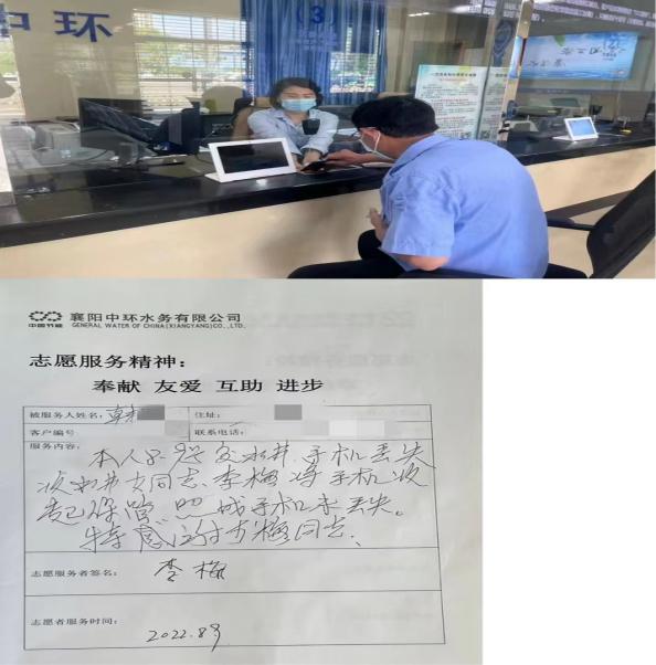 8月9日上午8時(shí)40分,用戶韓先生來(lái)春園路大廳辦理低保用戶優(yōu)惠業(yè)務(wù),離開時(shí)不小心把手機(jī)遺落在3號(hào)窗口,收銀員李梅同志發(fā)現(xiàn)后立即報(bào)告大廳主管并主動(dòng)保管好手機(jī)。上午11時(shí)30分,該用戶汗流浹背的來(lái)到大廳,著急地詢問是否有人拾到手機(jī),李梅同志在核實(shí)此是手機(jī)失主后,即刻將手機(jī)交還給該用戶。用戶以“非常滿意”的高度好評(píng)來(lái)表示對(duì)李梅同志拾金不昧精神的贊賞。