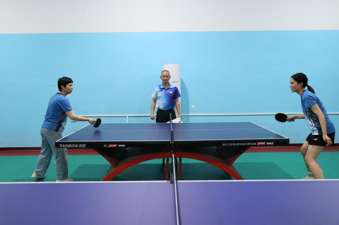 乒乓球室內(nèi),選手們球技精湛、攻防有序,讓小小的“銀球”在空中劃出一道道優(yōu)美的弧線。